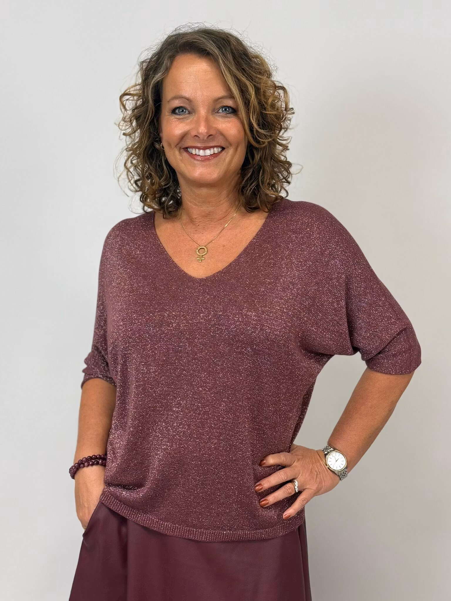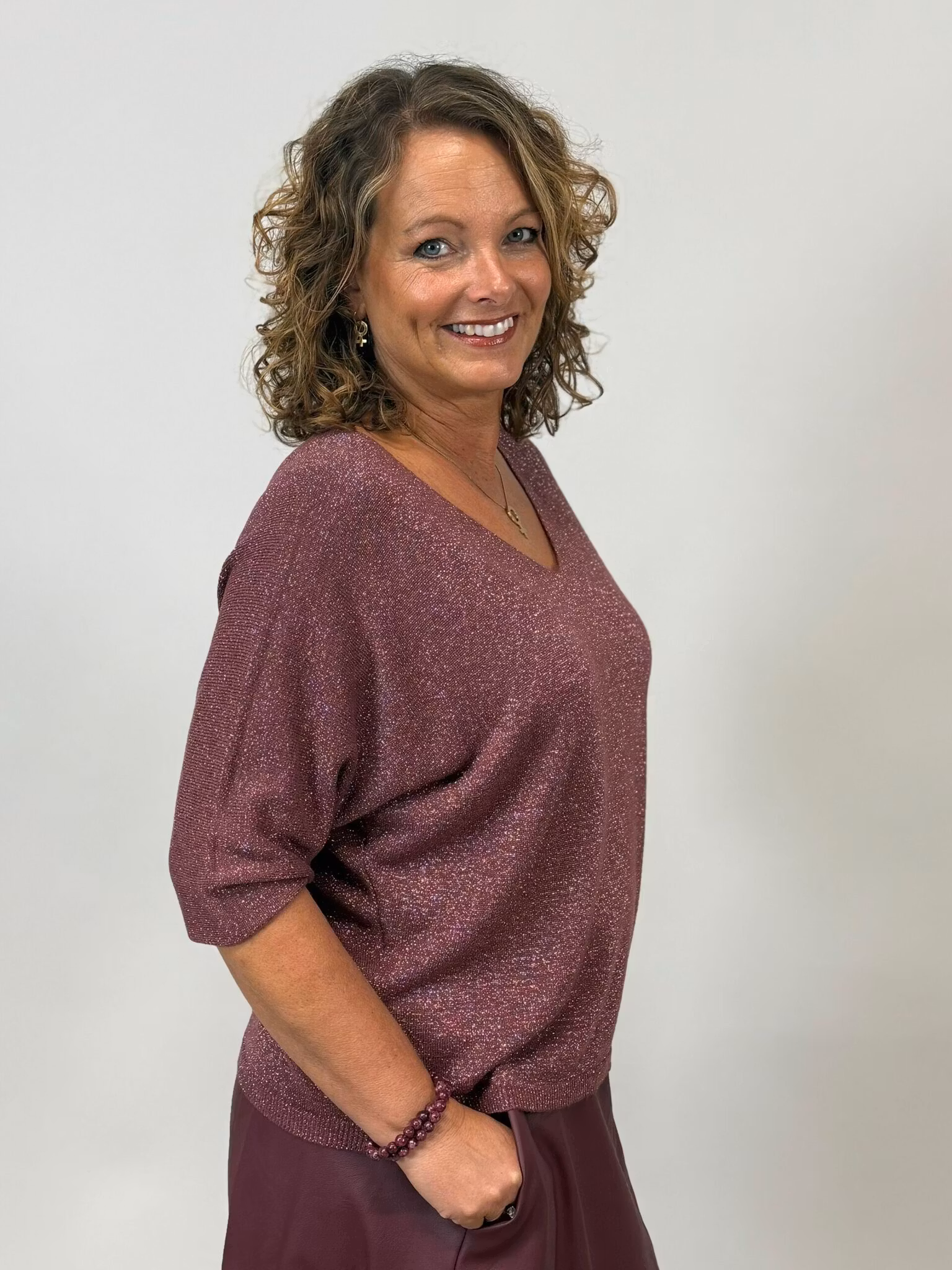 Festlig, glittrig topp med v-hals och 3/4-ärm. Toppen är snygg till både kjol och byxa och perfekt till höstens och vinterns alla festligheter.