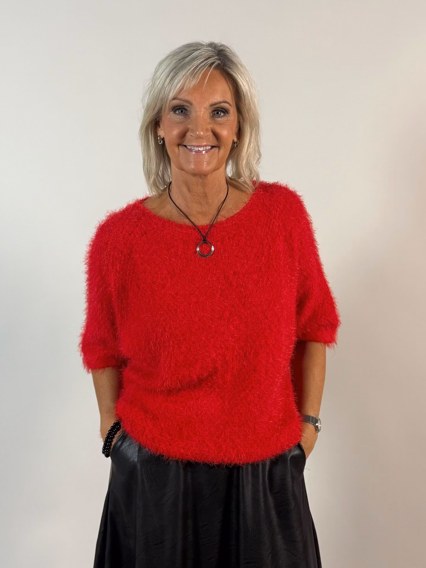 En mjuk och härlig lite "lurvig" tröja med rund hals, kort ärm och mudd nertill. Tröjan är snygg till det mesta, kjol, finbyxa, magisk byxa, jeans, dra den utanpå en klänning eller sätt en skjorta inunder så passar den vid fint både festligare tillfällen som på jobbet eller en hemmakväll. Tröjan kommer från Mix by Heart.