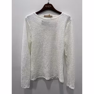 Denna härliga topp från Marta har en bubblig struktur i tyget, rund hals och lång ärm. Toppen är fin att bära som den är, under en stickad tröja eller under t ex vår fina ponchojacka.