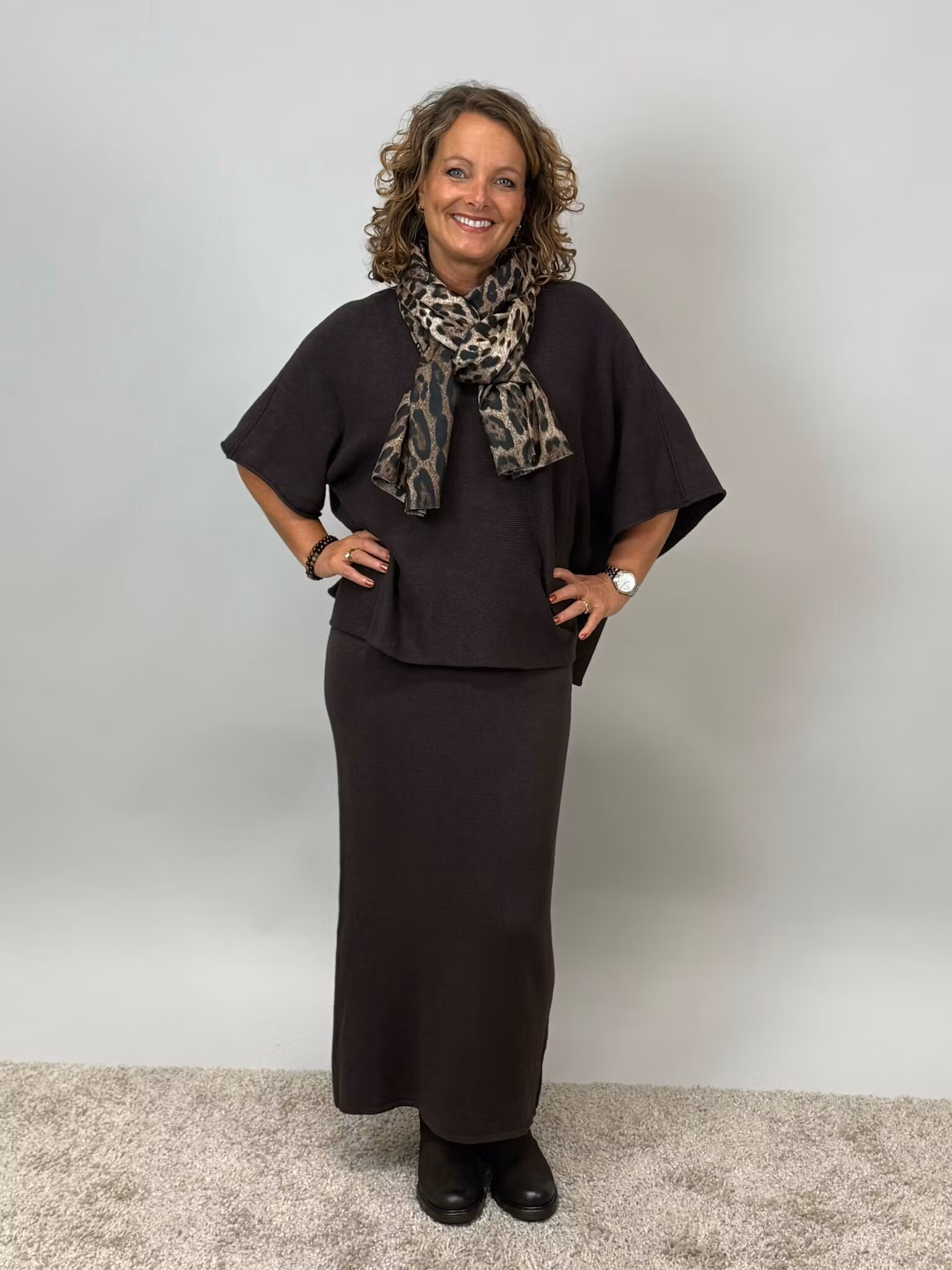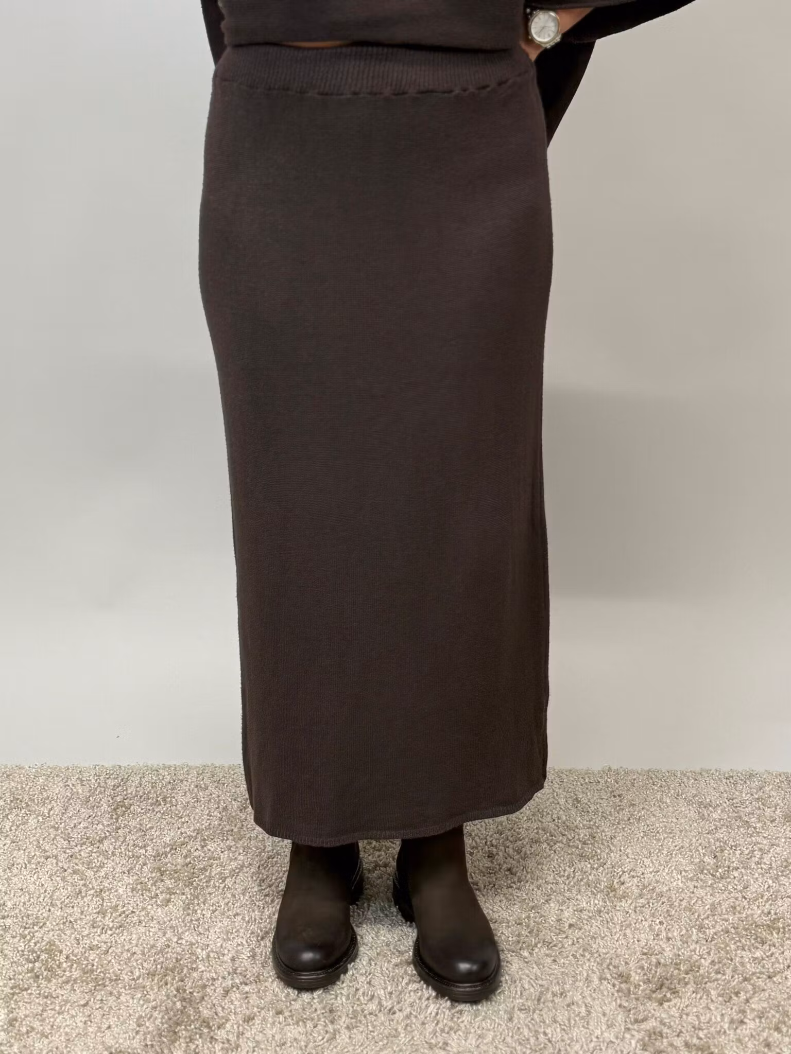 En riktigt snygg och härlig stickad kjol i samma kvalitet som ponchotröjorna och de omtyckta stickade tröjorna, vilka båda är snygga till och de matchar perfekt färgmässigt! kjolen har en skön resår i midjan.