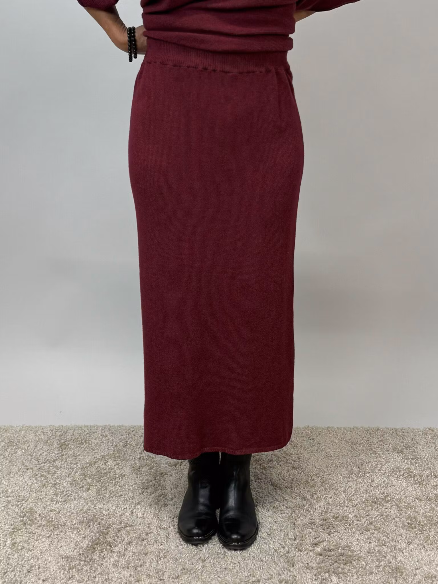 En riktigt snygg och härlig stickad kjol i samma kvalitet som ponchotröjorna och de omtyckta stickade tröjorna, vilka båda är snygga till och de matchar perfekt färgmässigt! Kjolen har en skön resår i midjan.