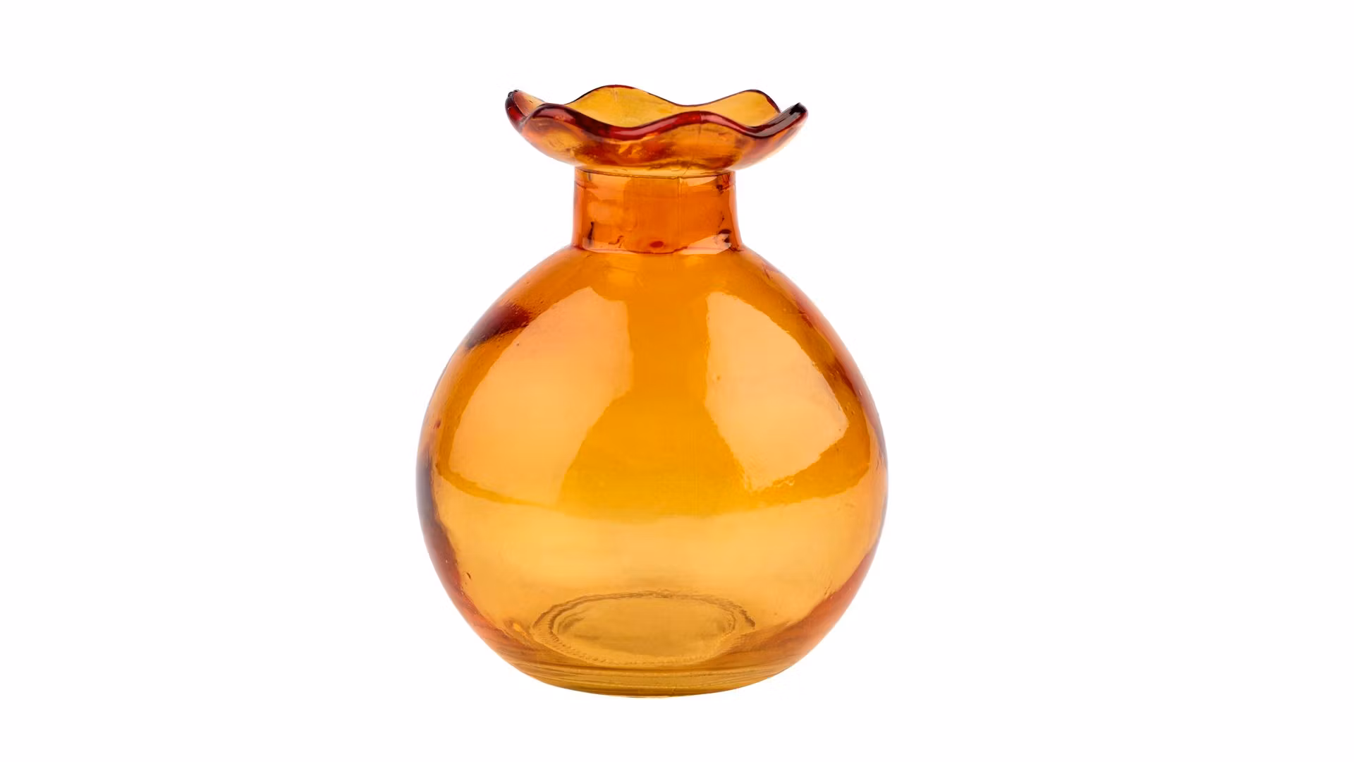 Söta och användbara vaser i färgat glas. Vasen som med sin storlek är lättplacerad har en lite vågad kant upptill och är dekorativ som en färgklick i inredningen, de matchar även skålarna på fot samt glasfaten vilket gör dukningen extra trevlig och man kan blanda färger efter tycke och smak.