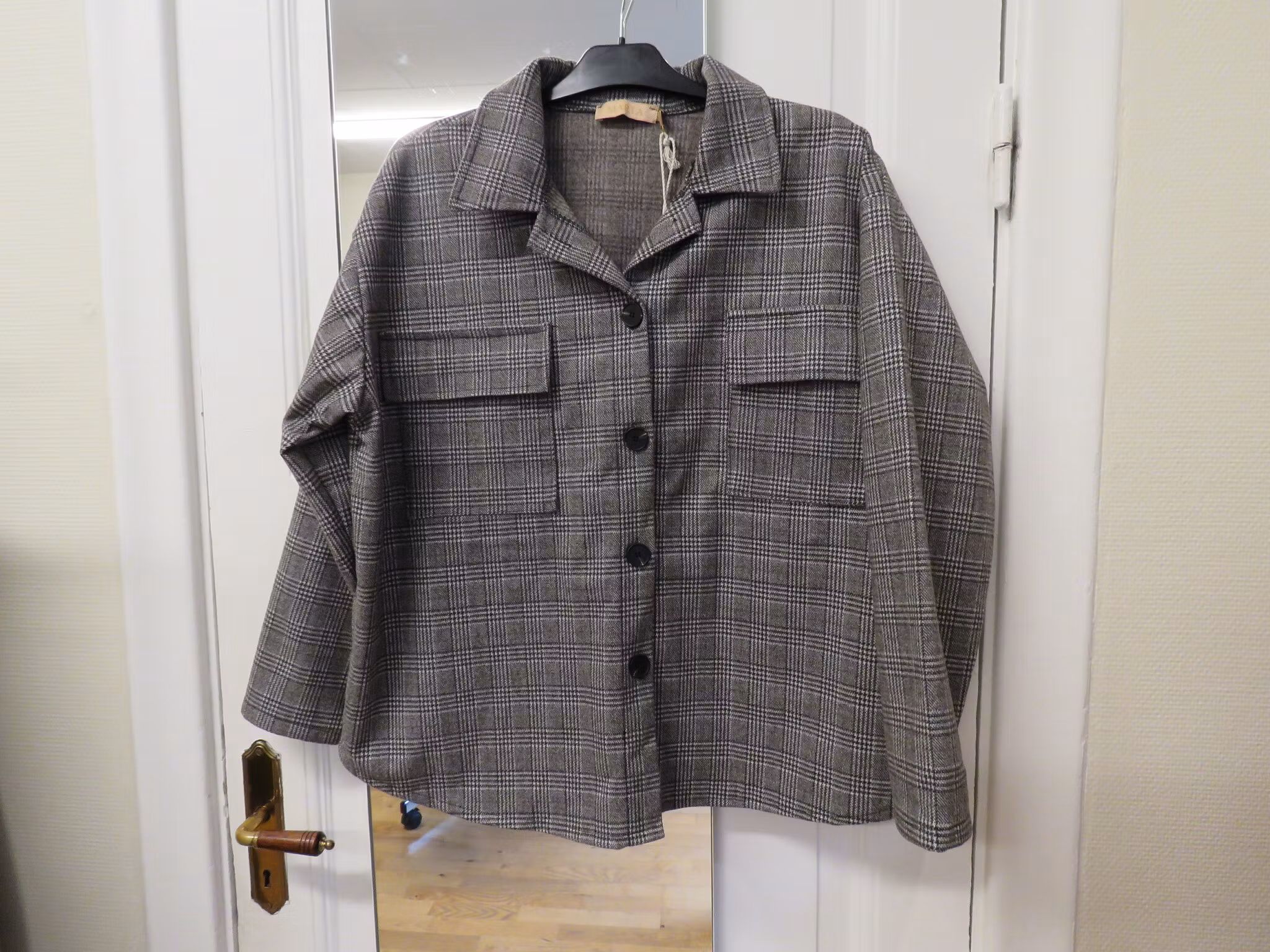 En mjuk och skön ofodrad jacka/kavaj från Marta i oversize. Jackan har ett fint rutmönstrer i milda toner, två bröstfickor, krage och knäpps med fyra stora knappar