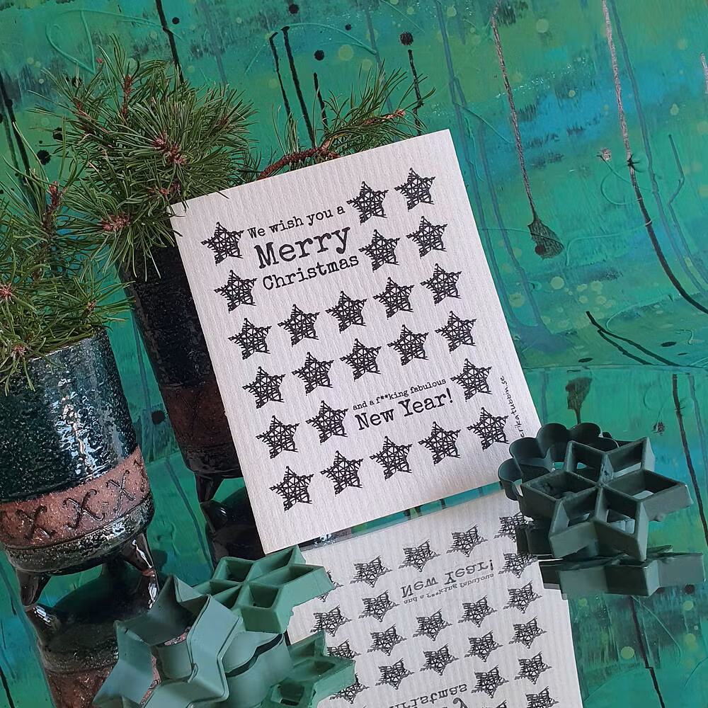 Disktrasa med stjärnor och text som blir en kul inredningsdetalj i hemmet under julen. Trasan är även trevlig att ge bort som present, kanske tillsammans med lite julgottor eller någon trevlig glögg. Trasan lämpar sig även p.g.a sin låga vikt att skicka som en julhälsning till släkt och vänner i när och fjärran